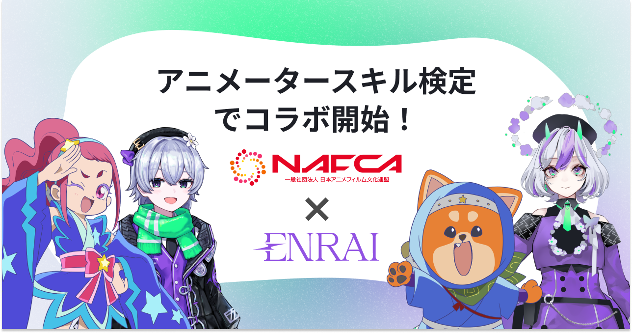 今回の取り組みは、両者が掲げる「クリエイターの育成・支援」という共通のミッションのもと、NAFCAの信頼性と「ENRAI」のデジタル技術を融合させ、業界全体の活性化および優れたアニメーターが正当に評価される社会の実現を目指します。