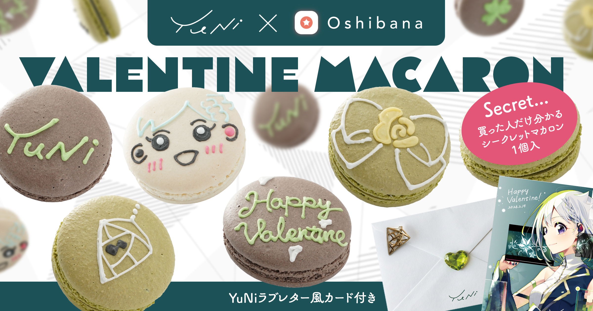 今回は、バーチャルシンガー『YuNi』のバレンタインマカロンを、ご本人監修のもと製作いたしました。こだわりの詰まった「推しマカロン」をぜひお楽しみください!